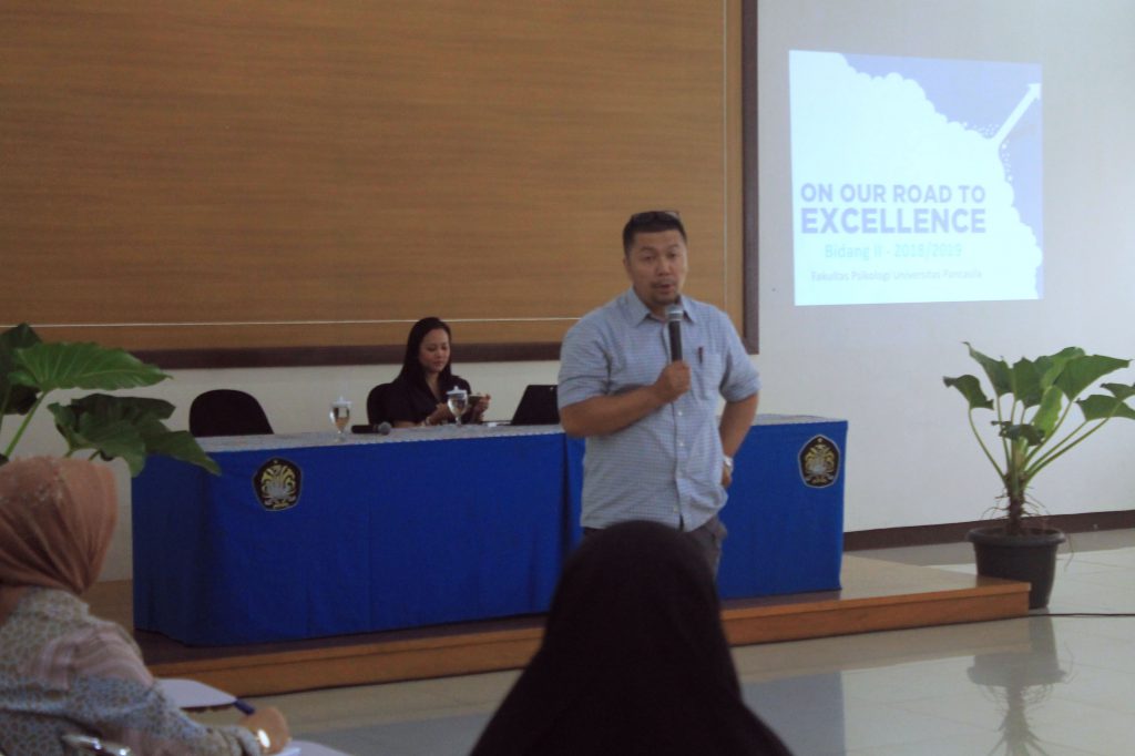 Hadir Wakil Dekan I, Dr. Charyna Ayu Rizkyanti S. Psi., M.A dan Wakil Dekan II, Seta Wicaksana, M.Psi sebagai pembicara pada open house kali ini. Mereka berdua menyampaikan materi yang berkaitan dengan bidang masing-masing, terutama masalah akademik dan administrasi serta fasilitas fakultas. Tidak lupa, para orang tua calon mahasiswa juga diberikan kesempatan untuk bertanya dan berdiskusi terkait dengan materi yang telah disampaikan.