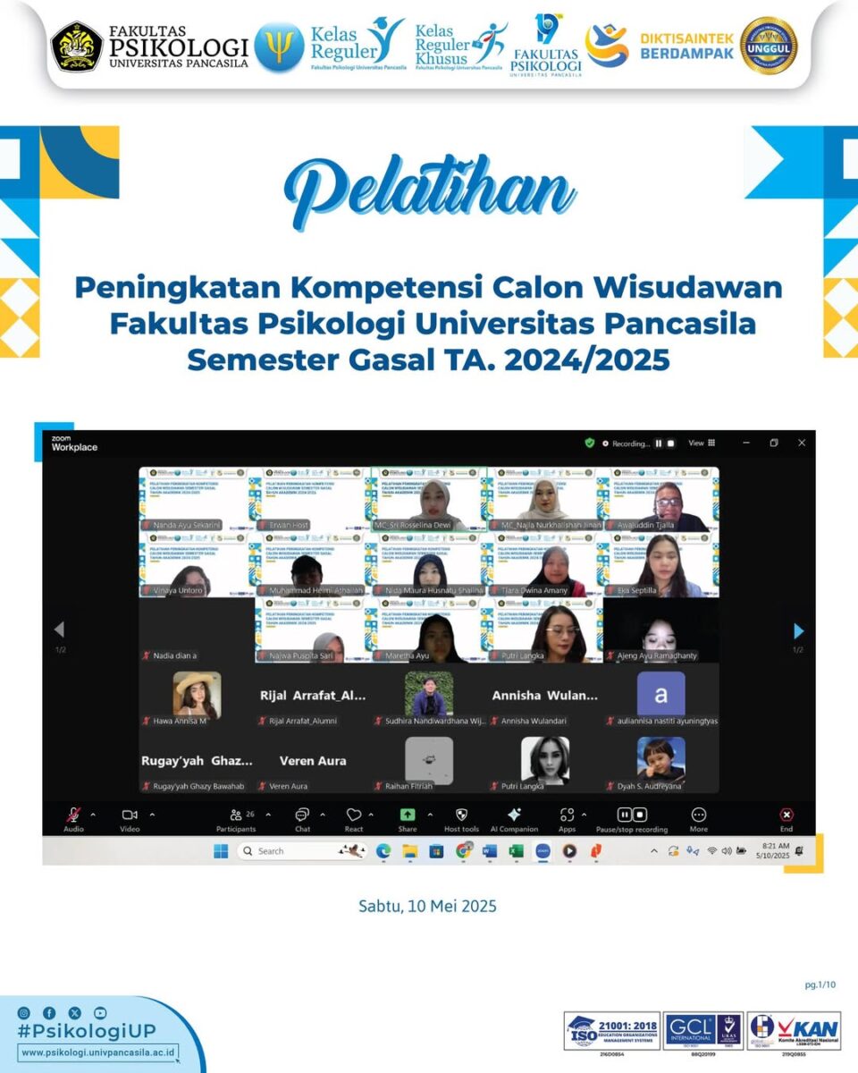 Pelatihan Peningkatan Kompetensi Calon Wisudawan/wati Dalam rangka membekali calon lulusan dengan wawasan dan keterampilan menghadapi dunia kerja, Fakultas Psikologi Universitas Pancasila menggelar pelatihan bertajuk “Get Your Dream Job Now!” untuk mahasiswa semester akhir Tahun Akademik 2024/2025. Kegiatan ini menjadi ajang …