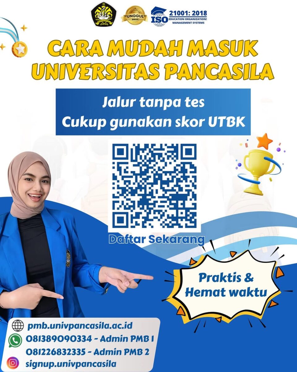 ✨ Mau masuk kuliah TANPA TES? Bisa banget! Universitas Pancasila membuka jalur masuk dengan menggunakan skor UTBK! ✅ Tanpa ribet ✅ Praktis & hemat waktu ✅ Cukup pakai skor UTBK Daftar sekarang juga dengan scan QR code atau kunjungi: pmb.univpancasila.ac.id …