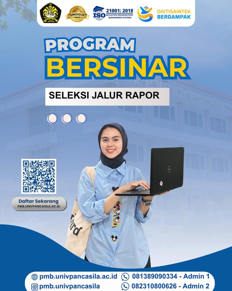 Good news buat kamu yang gasuka ribet! Daftar kuliah di Universitas Pancasila bisa lewat Jalur BERSINAR (Seleksi Rapor) ✨ ✅ TANPA TES ✅ Cukup nilai rapor ✅ Proses cepat dan praktis! Info & pendaftaran: www.pmb.univpancasila.ac.id Daftar sekarang sebelum kuota habis! …