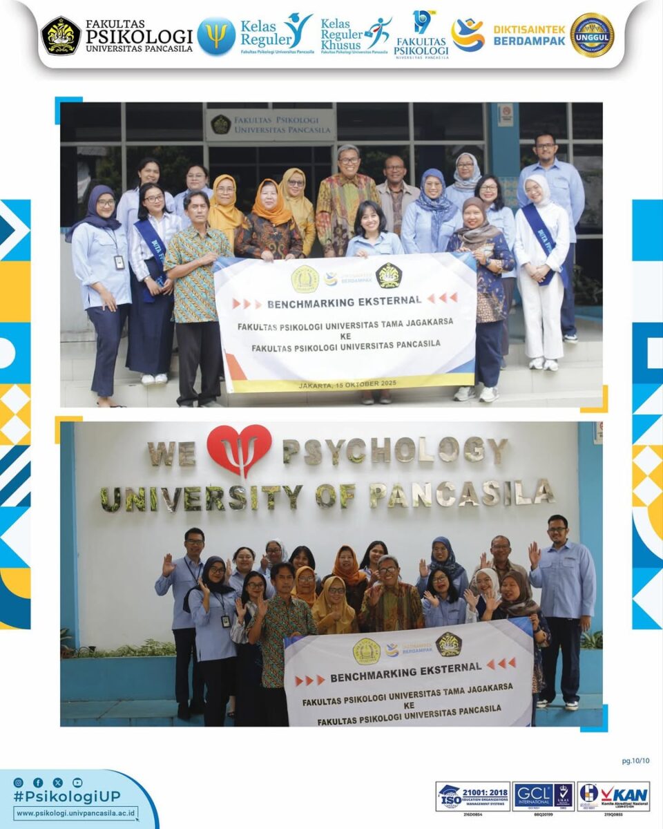 Jakarta — Fakultas Psikologi Universitas Tama Jagakarsa (FPsi UTama Jagakarsa) melaksanakan kegiatan benchmarking ke Fakultas Psikologi Universitas Pancasila (FPsi UP) pada Rabu, 15 Oktober 2025. Kegiatan ini merupakan bagian dari upaya implementasi dan penguatan program Diktisaintek Berdampak, yang berfokus pada peningkatan kualitas tata kelola, inovasi akademik, serta kolaborasi antar perguruan tinggi dalam lingkup ilmu sosial dan humaniora.