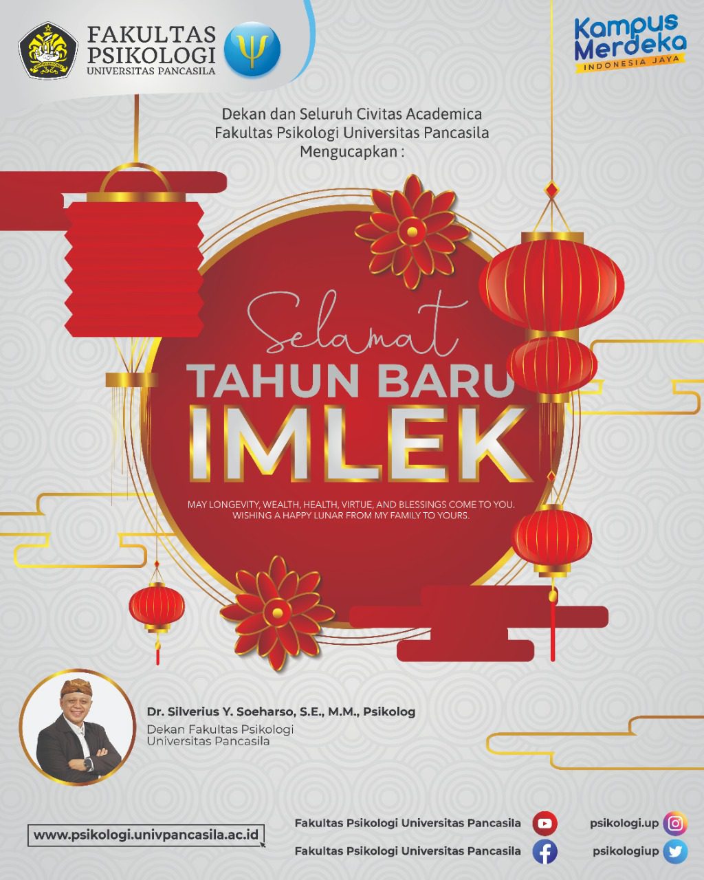 Dekan dan Seluruh Civitas Academica Fakultas Psikologi Universitas Pancasila mengucapkan: “Selamat Tahun Baru Imlek 2022”. Doa terbaik dari kami untuk anda sekeluarga agar diberikan kebahagiaan, kesehatan, dan kedamaian yang berlimpah.