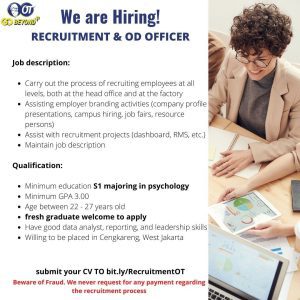 Orang Tua Group membuka Lowongan untuk posisi Recruitment dan OD Officer. CV dapat disubmit melalui link: bit.ly/RecruitmentOT