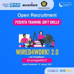 Sebagai wujud kerja sama antara Fakultas Psikologi Universitas Pancasila dan PLAN Internasional, telah dibuka pendaftaran untuk mengikuti Training Soft Skill untuk seluruh mahasiswa di lingkungan Universitas Pancasila. Kegiatan ini dilakukan untuk mengembangkan soft skill kalian sehingga menjadi pribadi yang profesional dan siap masuk ke dunia kerja.