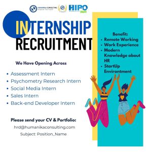 PT. Humanika Amanah Indonesia (Humanika Consulting) membuka kesempatan magang bagi mahasiswa jurusan Psikologi di Universitas Pancasila. Untuk informasi lebih lanjut tentang program ini, dapat menghubungi bapak Dr. Seta Ariawuri Wicaksana, M.Psi., Psikolog pada Whatsapp di nomor +62 811-195-343. Adapun tata cara melamar untuk posisi magang dapat dilihat pada poster berikut ini:
