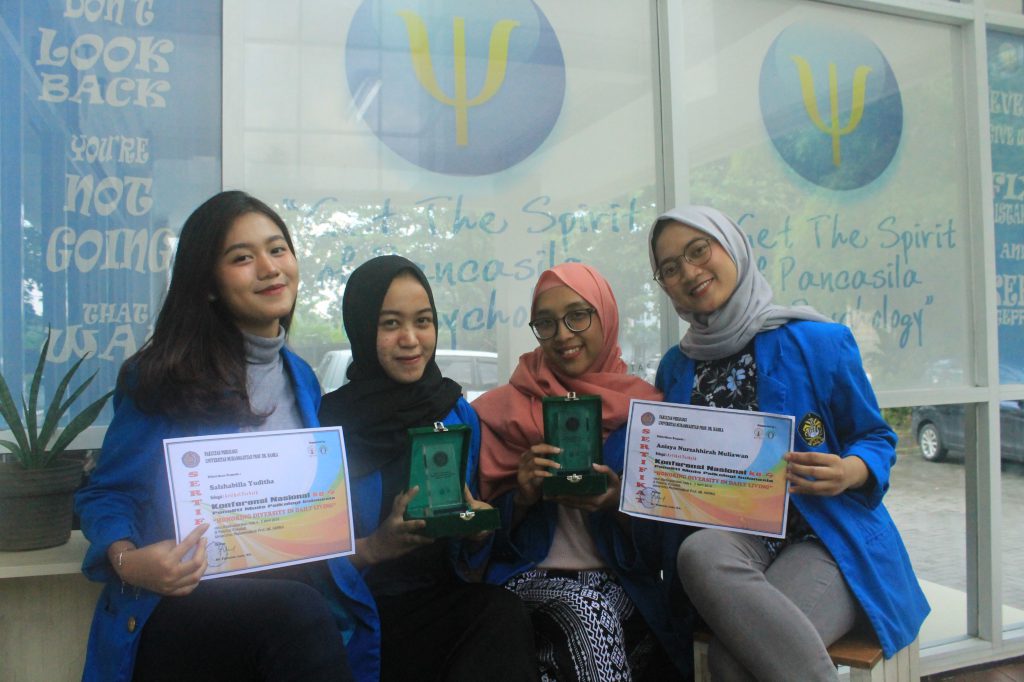Selamat kepada Anisya Nurzahirah Muliawan, Azra Humaira, Rosalina, dan Salsabila Yudhita yang telah memenangkan artikel terbaik pada Konferensi Nasional ke-4 Peneliti Muda Psikologi 2019 dengan tema Honoring Diversity in Daily Living yang diselenggarakan di Universitas Muhamadiyah Prof. Dr. Hamka pada 4-5 April 2019.