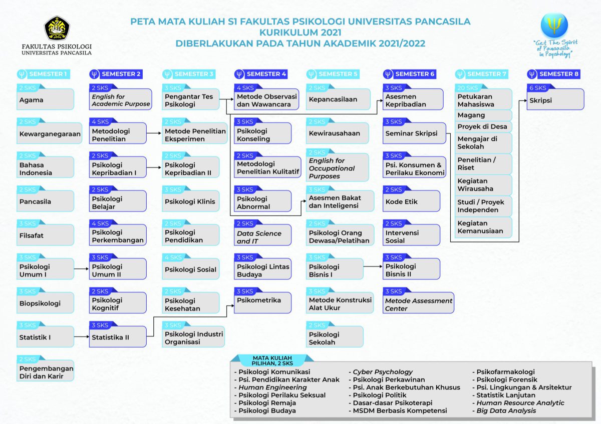Dalam penyusunan Fakultas Psikologi juga mengacu pada ketetapan Asosiasi Penyelenggara Pendidikan Tinggi Psikologi Indonesia (AP2TPI) yang dituangkan pada SK AP2TPI No. 2/KEP/2020 tentang Standar Proses Pembelajaran Terkait Hak Belajar Tiga Semester di Luar Program Studi dalam Rangka Implementasi Merdeka Belajar – Kampus Merdeka pada Program Studi Psikologi Jenjang Sarjana. Sosialisasi dari SK ini dilakukan pada Kolokium Khusus Psikologi pada bulan Juli 2020. Kurikulum di Fakultas Psikologi sendiri telah mengalami 2 kali peninjauan sejak berdiri tahun 2006. Peninjauan kurikulum yang pertama dilakukan pada tahun 2011 dan diimplementasikan pada Kurikulum 2012. Lima tahun kemudian kembali dilakukan peninjauan dan menghadirkan kurikulum 2018 yang masih berjalan hingga 2021. Mengingat kegiatan peninjauan dilakukan kurikulum dilakukan per 5 tahunan, maka perlu dilakukan peninjauan atas Kurikulum 2017. Hal ini bertepatan dengan tuntutan penyusunan Kurikulum MBKM sehingga peninjauan kurikulum penting untuk segera dilakukan Adapun hal- hal yang menjadi perhatian pada penyusunan Kurikulum MBKM 2021 adalah sebagai berikut: