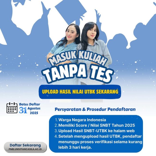 #PMBUP2025 #UniversitasPancasila #MasukKuliahTanpaTes #UTBK2025 #KuliahMudah #kampusunggul